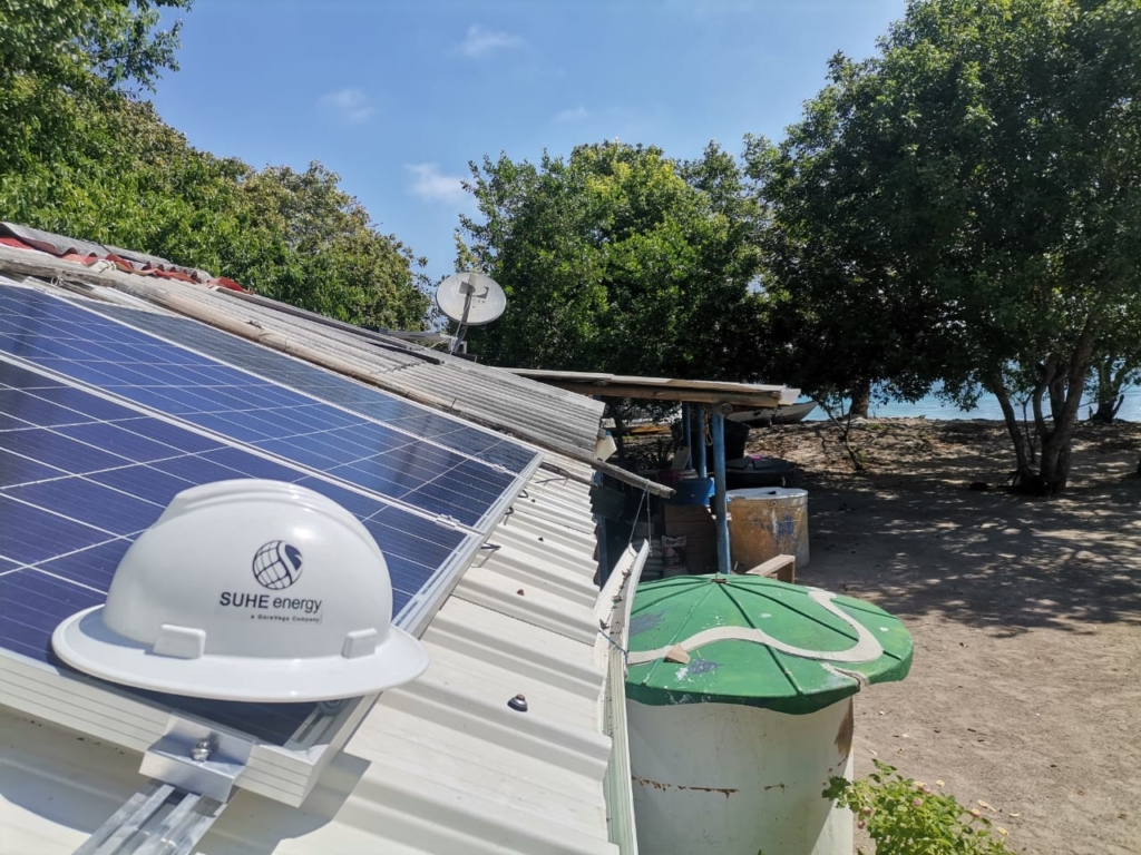 Pero es todo esto no es solo una declaración de intenciones. SUHE Energy, a los pocos meses de abrir sus operaciones en Colombia, ya instaló un sistema solar autónomo de 840 watts pico que beneficia a una comunidad de pescadores en las Islas del Rosario (Cartagena, Bolívar), a la que provee de energía eléctrica de almacenaje de pescado, más el consumo doméstico (bombillos, ventiladores, televisores, carga de celulares, equipos de sonido).